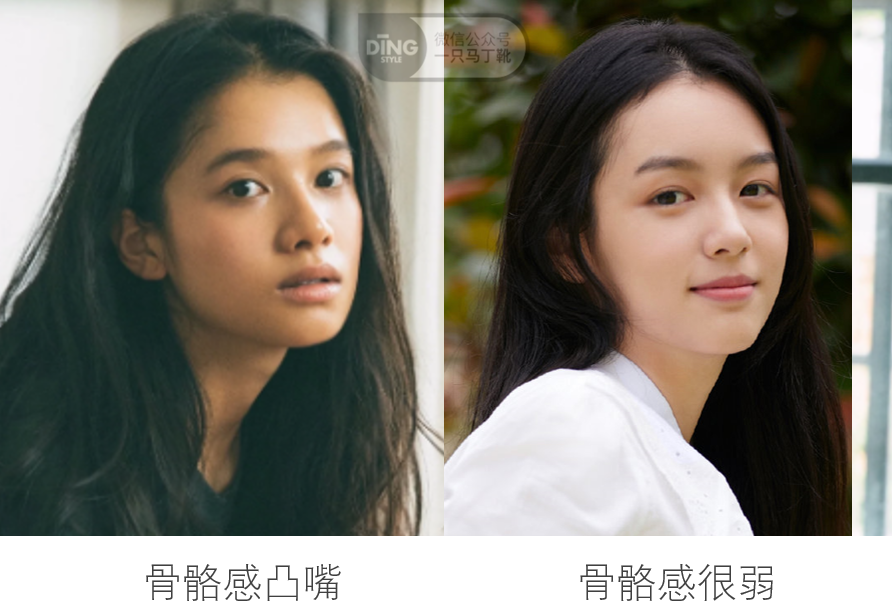 我们可以对比感受一下下半张脸轮廓的不同气质。